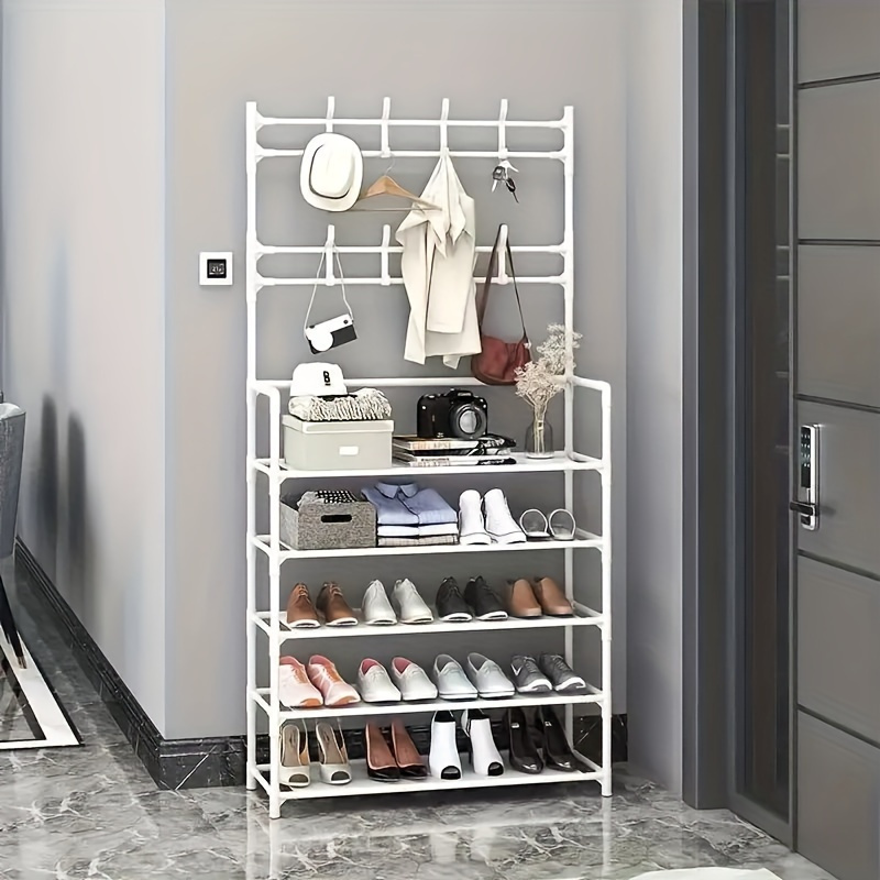 TEMU 탈착식 후크가 있는 5단 금속 신발 및 모자 랙 - 집이나 아파트용 다층 보관 정리대, 검정 또는 흰색, 높이 24인치, 모자, 캡 및 액세서리를 위한 견고한 디자인, 신발 보관 정리대|모자|거실장|신발
