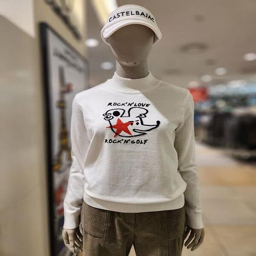 [까스텔바작]여성 겨울 골프웨어 캐릭터 자수 방풍 스웨터 골프 라운딩 니트