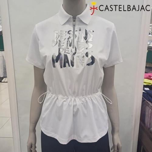 [까스텔바작]여성 여름신상 블랙라인 전사 프린트 반팔 에리 티셔츠_BGEMTS806_WH_DJ_DJ