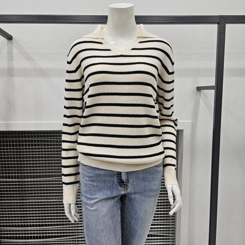 [꼼빠니아]브이넥 카라 스트라이프 니트티 CAFW9-WSL030 _IC