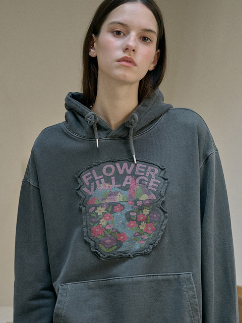 [꼼파뇨] 빌리지 플라워 피그먼트 후드티 스모크블랙