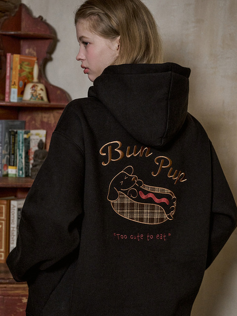 [꼼파뇨] 번앤 퍼피 패치 후드티 블랙