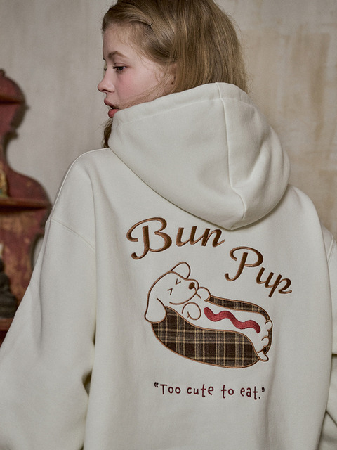 [꼼파뇨] 번앤 퍼피 패치 후드티 크림