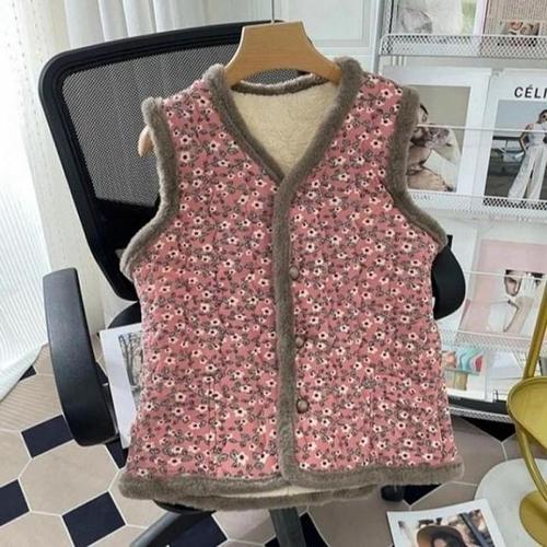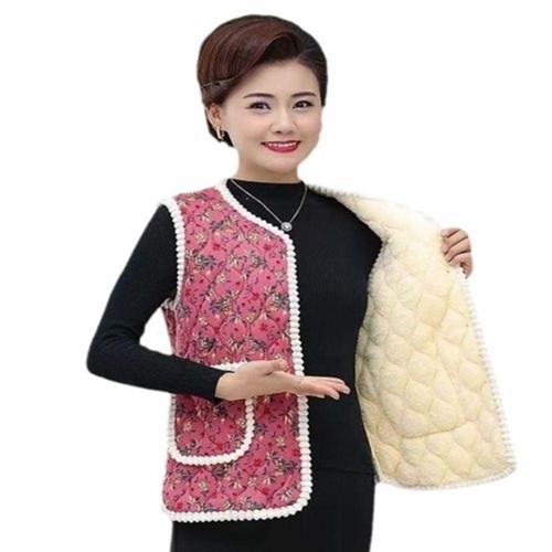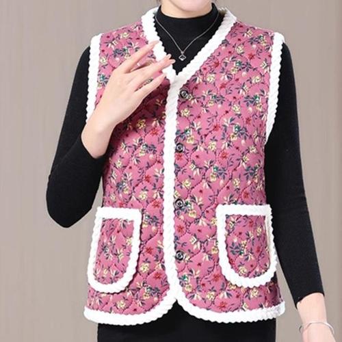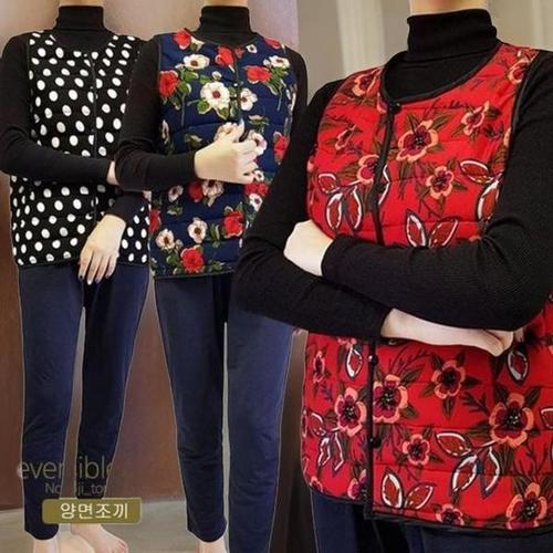 여성 겨울 털 누빔조끼 털바지 꽃무늬 방한 보온 엄마옷 할머니옷 촌캉스 김장조끼 레트로