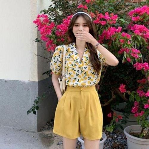 [모노무드]LMO 걸스 꽃나염 스타일 셔츠칼라 하프슬리브 여름철외출복 티탑