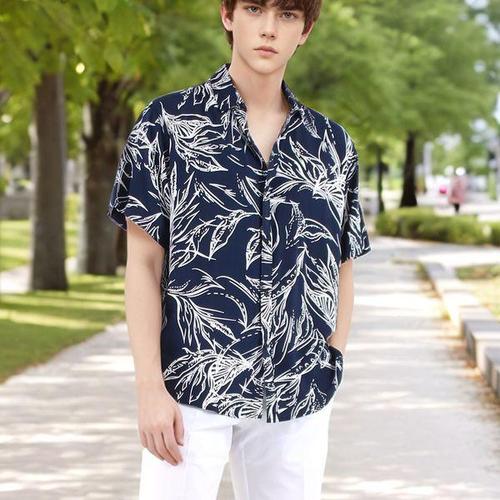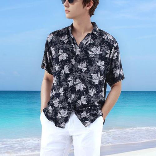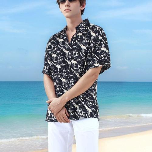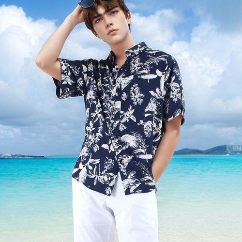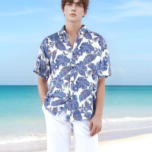 인투조이 하와이안 반팔 꽃무늬 셔츠 7부 소매 커플 해변 스타일 동남아 휴가