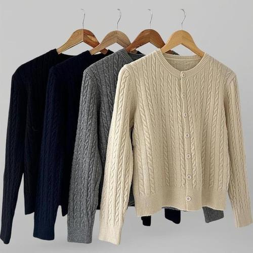 [신상오픈런]여성 꽈배기 디자인 라운드넥 기본 무채색 니트 가디건 (41265617)
