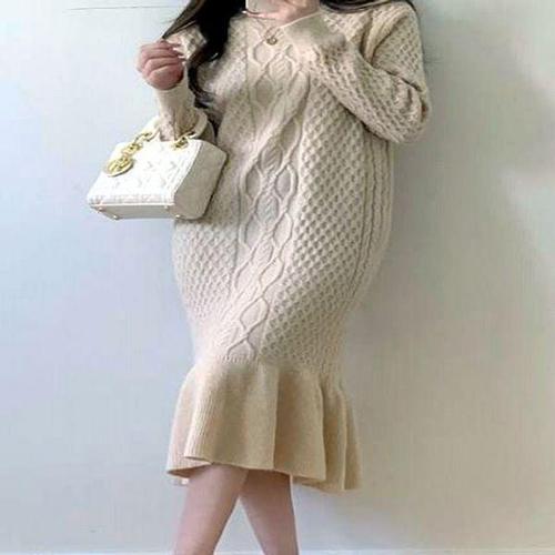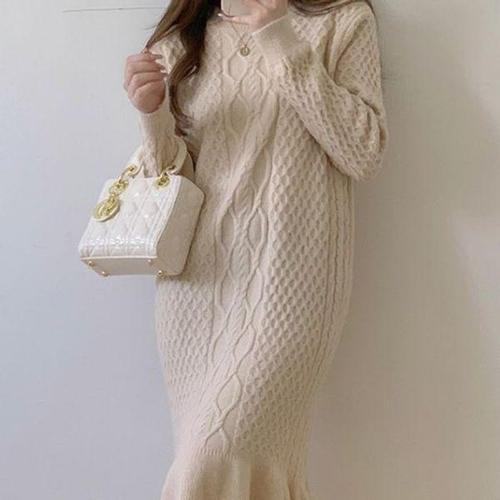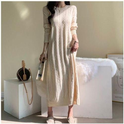 [다잇템]여성용 클래식 꽈배기 스웨터 롱슬리브 원피스
