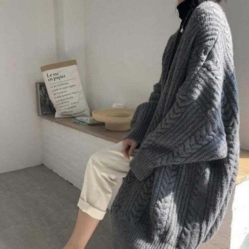 [셀럽하우스]노버튼 NFQH1363 여성 캐주얼 꽈배기 짜임 니트 롱가디건 봄아