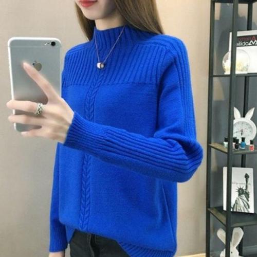 꽈배기 니트 스웨터 긴팔 반폴라 여성 WFLMQZ4