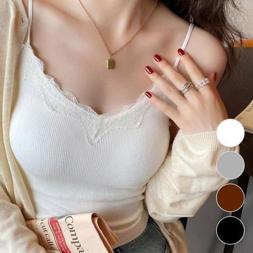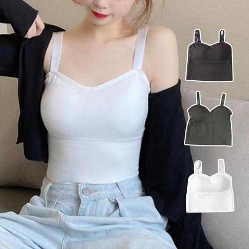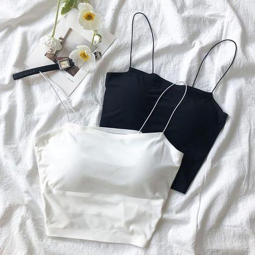 [에이치플러스몰]여성 레이스 패드내장 언더웨어 슬림 크롭 끈나시티