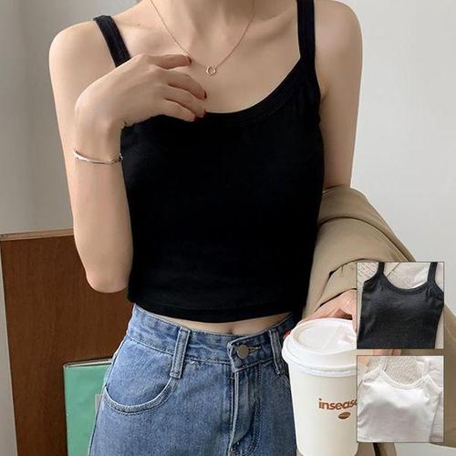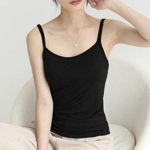굵은 어깨끈 캡 내장 여자 데일리 볼륨 업 나시티