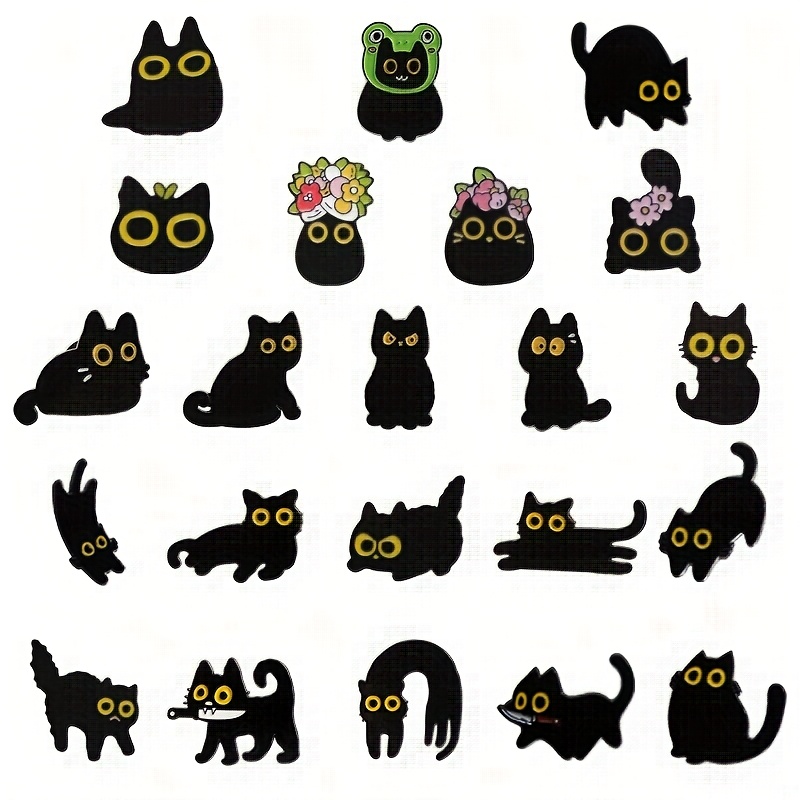 TEMU 22개 검은 고양이 브로치 만화 귀여운 큰 눈 고양이 배지 시크 에나멜 합금 배지 남녀공용 의류 백팩 모자 다기능 추가 선물 친구에게