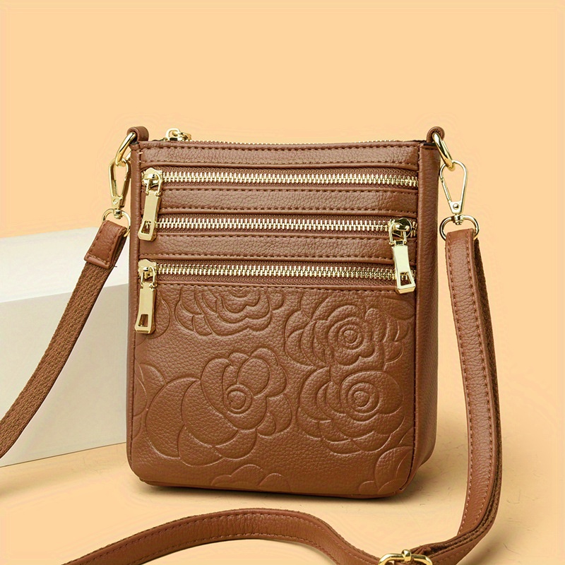 TEMU 정품 가죽 여성 숄더백, 새로운 다층 디자인, 비즈니스 출퇴근 싱글 컴파트먼트 백, 모던한 유럽 및 미국 스타일, 5단 지퍼 휴대폰 가방, 패셔너블하고 다재다능한, 아웃도어 여행 크로스바디 백