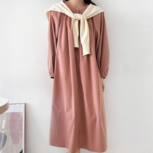 쫑쫑이의 HARU 여성원피스 롱 가을루즈핏원피스 린넨원피스 베이직 중반팔원피스