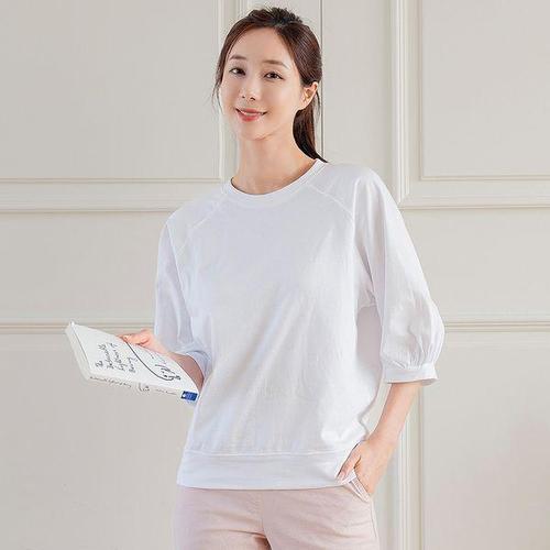 [드리다]면 나그랑 흰색 7부 맨투맨 티셔츠 40-50대 미시 캐주얼