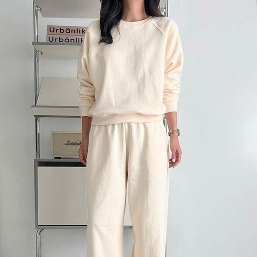 [옷자락]여자 원마일웨어 나그랑 면 맨투맨 밴딩 통바지 세트