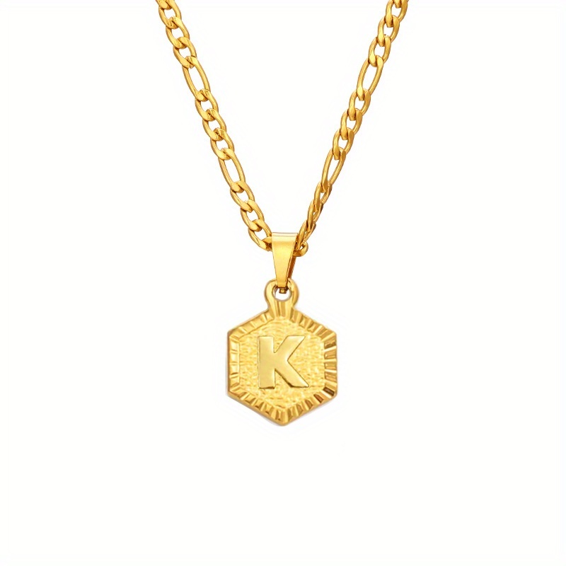 TEMU 세련되고 정교한 초기 문자 펜던트 목걸이, 304 304L 스테인리스 스틸으로 제작되었으며, 금색으로 제공됩니다. 육각형 알파벳 디자인으로 특징이며, ., 십 대를 위한 맞춤형 주얼리로 완벽합니다.