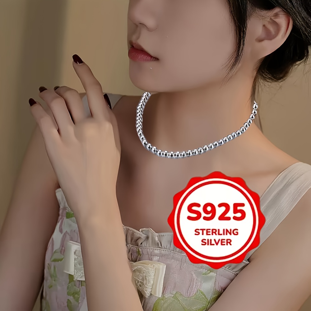 TEMU 우아한 스털링 실버 비즈 목걸이, 저자극성 액세서리를 사랑하는 여성을 위한 완벽한 선택 – 일상 의상과 신발에 어울리는 다재다능한 아이템|은목걸이|비즈목걸이