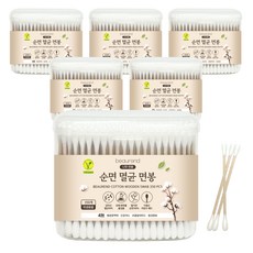 [잡동산이]이지앤 원터치면봉 200P(원통)-5개 나무면봉 멸균 유아 고급면봉 원통면봉