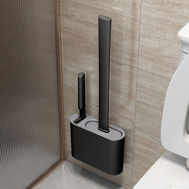 TEMU 튼튼한 검정 변기 청소 브러쉬 (벽걸이 홀더 포함) | 납작한 헤드 디자인, 욕실 및 주방 청소에 적합, 크리스마스, 추수감사절 선물로 완벽