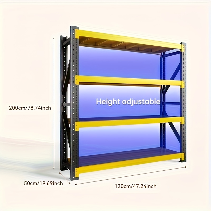 TEMU 헤비 듀티 4단 조절식 메탈 차고 선반, 5000 lbs 용량, 78.8" 높이의 산업용 보관 랙 (창고, 헬스장, 지하실용) - 블랙, 47.2" 폭 x 19.7" 깊이 x 78.8" 높이, 내구성 있는 페인트 처리된 메탈 프레임, 다용도 선반
