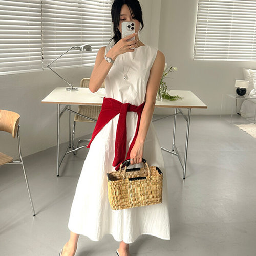 더클립 / 라피엘 코튼 플레어 슬리브리스 원피스