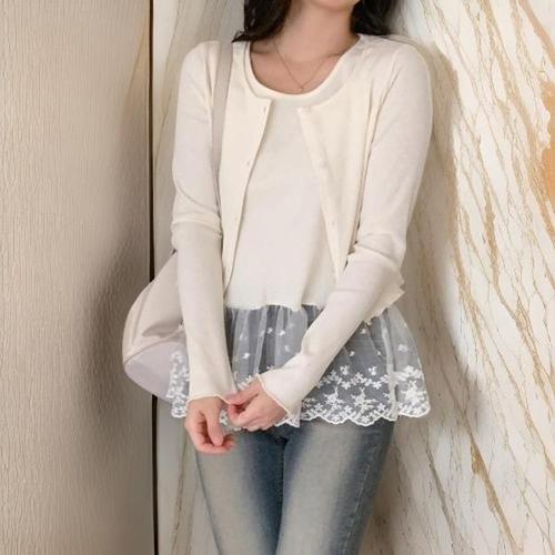 [옷자락]여자 데일리 슬림핏 스판 버튼 레이어드 긴팔 나시 세트
