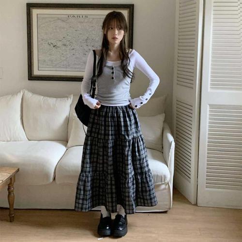 [에이치플러스몰]단가라 여성 데일리 나시 니트 클래식 스커트 세트 롱