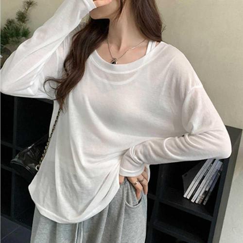나시 레이어드 여리핏 루즈 라운드 긴팔 티셔츠 세트 WFJKL27