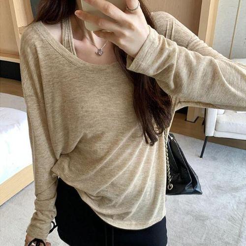 [엄지척]여성 루즈핏 내츄럴 착용 슬리브리스 긴팔티셔츠 세트_19630062_667501