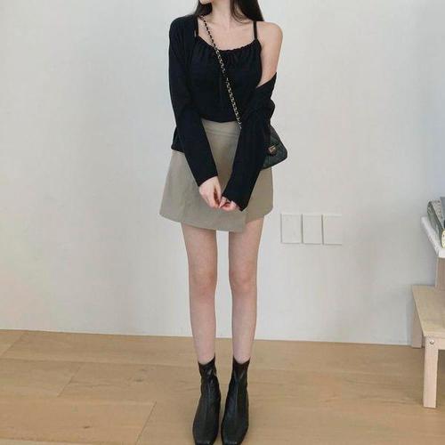 채핏 듀엔 홀터탑+가디건 세트 섹시탑 숏 크롭 볼레로 나시 긴팔 SET 투피스 페미닌