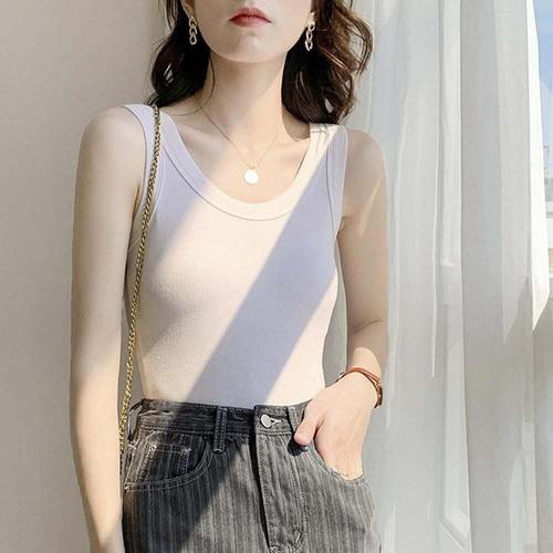 얇은 베이직 단색 크롭 나시 스판 면티 슬림핏 민소매 WC2A9F2