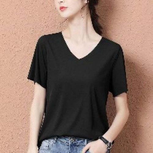 [셀럽하우스](129000056) UUVE3119 원단탑 면티 민소매 브이넥 여성 반팔티