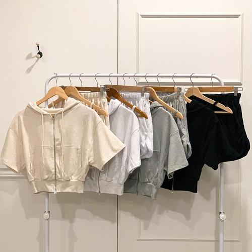 여성 슬리브리스 후디집업 하프팬츠 세트
