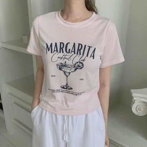 옷자락 / 여자 나염반팔티 레터링 베이직핏 라운드 썸머 티셔츠