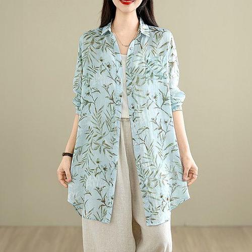 샵앤) 여성 나염 시스루 쉬폰 긴팔 블라우스 SIU-WBL-3814-수국