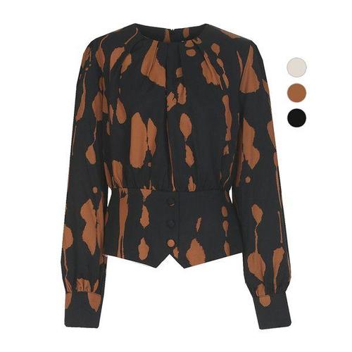 [비비드시크릿가너]여성 모던 나염배색 단추장식 정장 블라우스