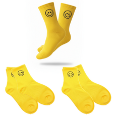 캐디샵 국산 컬러 스마일 여성 중목 골프 양말, 3개, 옐로우