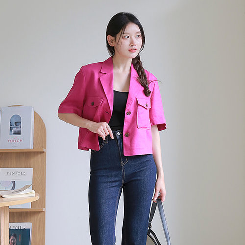 [최초가 99,000원][르포엠]프렌치 린넨 루미에 크롭 자켓
