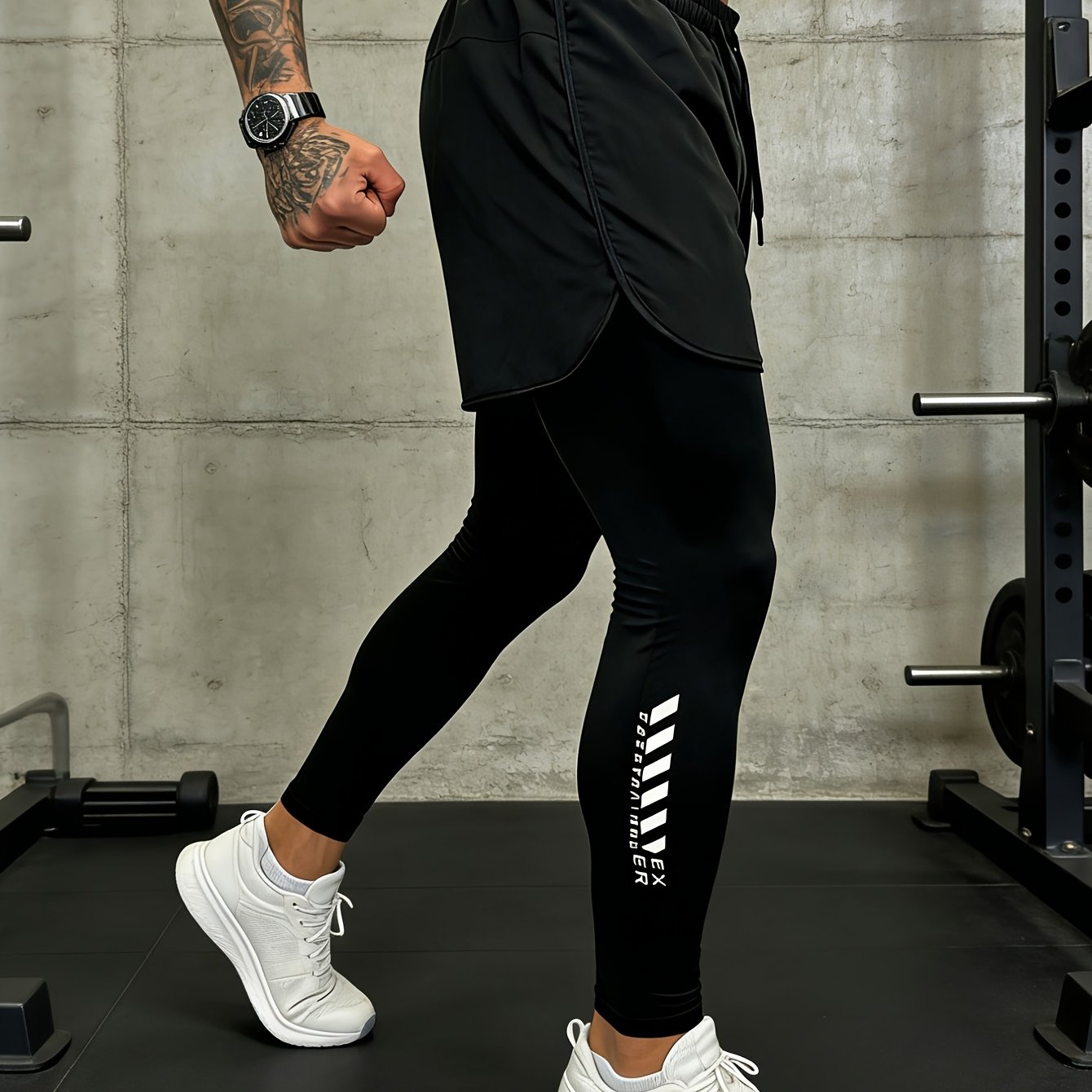 TEMU 남성용 2-in-1 워크아웃 쇼츠 & 압박 팬츠 - 고신축성 피트니스 쇼츠, 여름 운동용 멀티쇼츠, 비대칭 밑단 (세탁기 사용 가능)