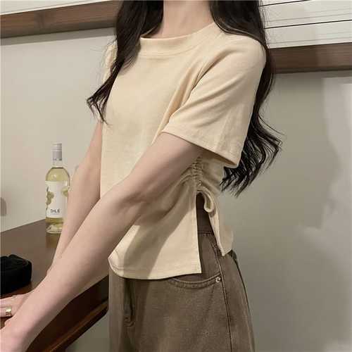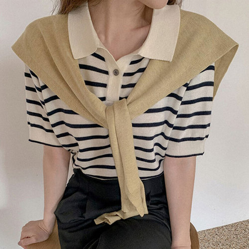 슈팅스타 / 카라넥 슬림 니트 반팔 크롭 티셔츠 529922