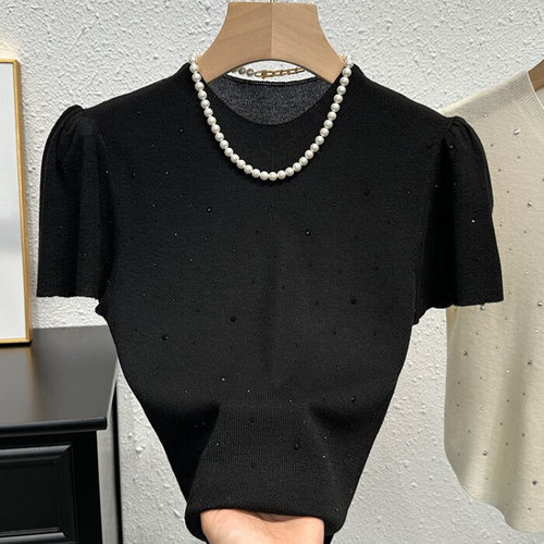 슈팅스타 / 반팔 라운드 큐빅 슬림핏 기본핏 심플 로맨틱 반팔 니트 티