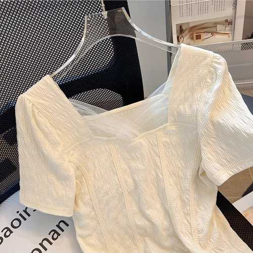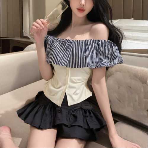 슈팅스타 / 섹시 시크 오프숄더 퍼프 셔링 슬림 반팔 티셔츠