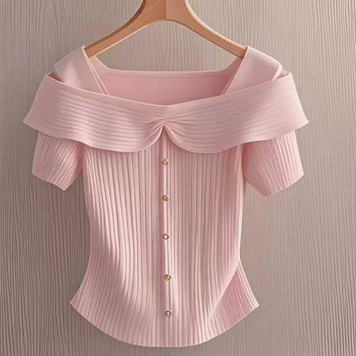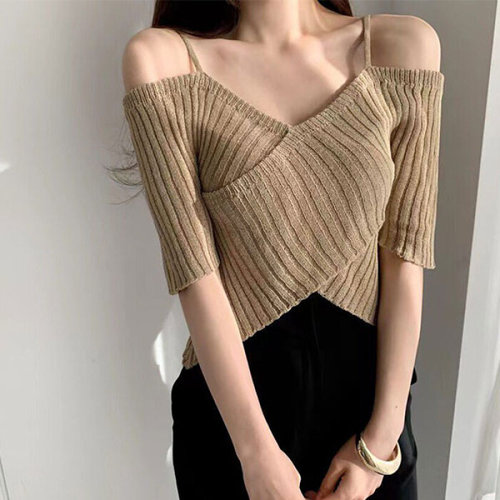 슈팅스타 / 오프숄더 크롭 반팔 니트 탑 티셔츠 126036