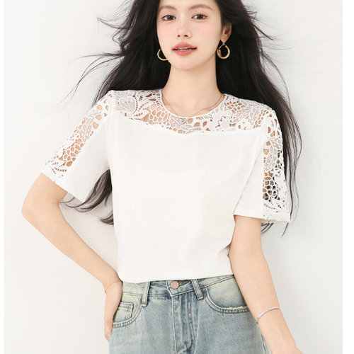 슈팅스타 / 로맨틱 아일렛 레이스 시스루 반팔 티셔츠