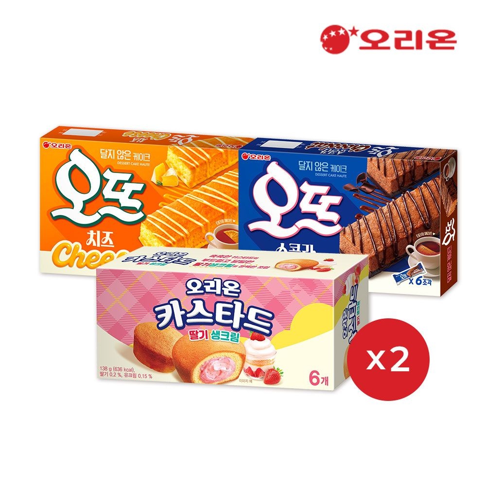 (연휴10.10순차출고)오리온 오뜨 치즈 6P 2개 + 쇼콜라 6P 2개 + 카스타드 딸기생크림 6P 2개
