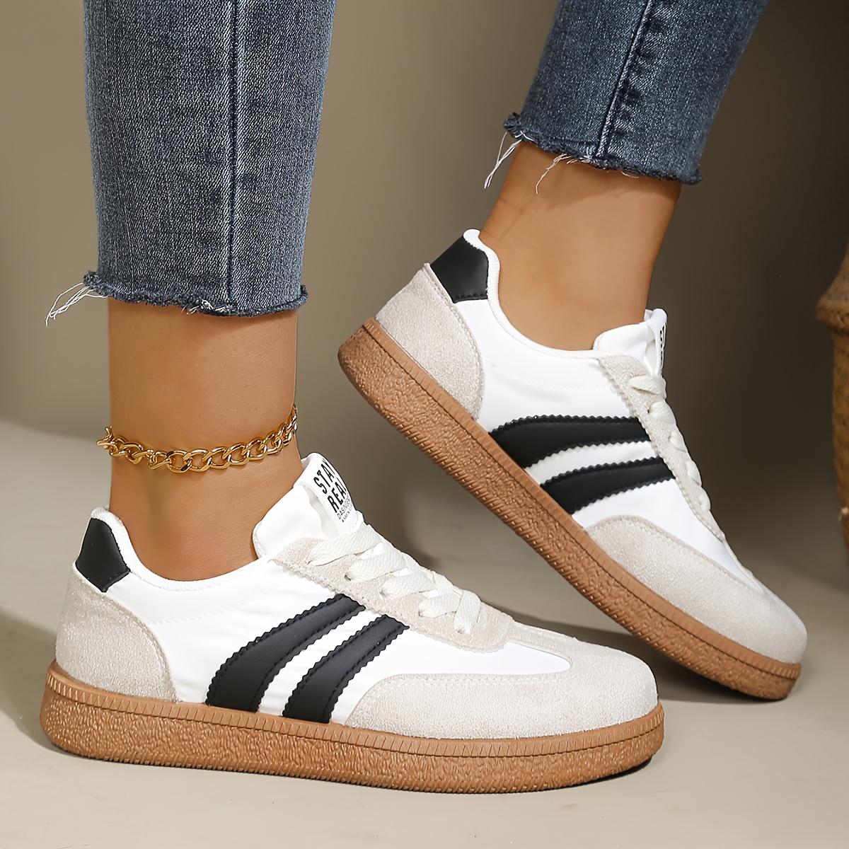 TEMU 여성용 신상 가벼운 독일 트레이닝화, 레이스업 로우탑 플랫 편안한 캐주얼 스니커즈, 여성 신발