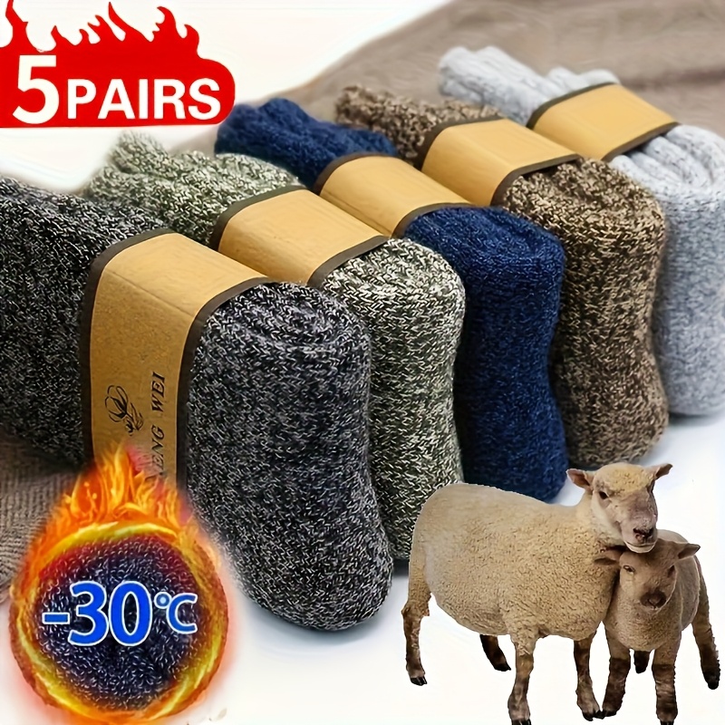 TEMU 남녀공용 겨울 통增加厚度 양말 5켤레, 남성용 아웃도어 캠핑 하이킹 방한 동파 방지 보온 스노우 부츠 양말, 남성용 겨울 긴 스타킹 수건 양말