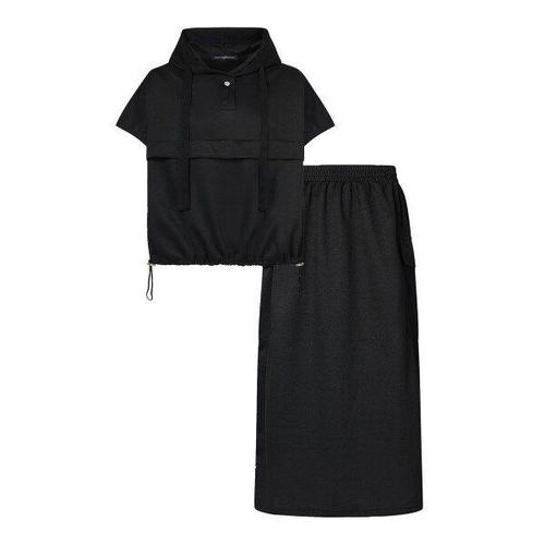 정상가:99,000원 | 스트링 후드 끈 티셔츠 트임 스커트 셋업 (NO1OW018L0)
